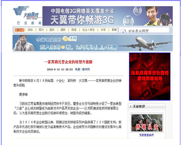 海南旅游超市網、天府熱線網——同康活性碳成為飯店環保綠色產品